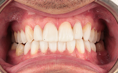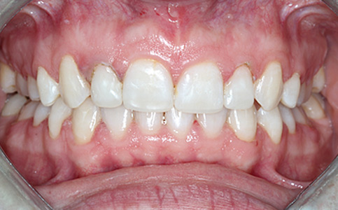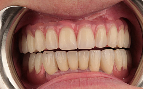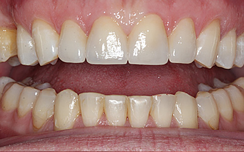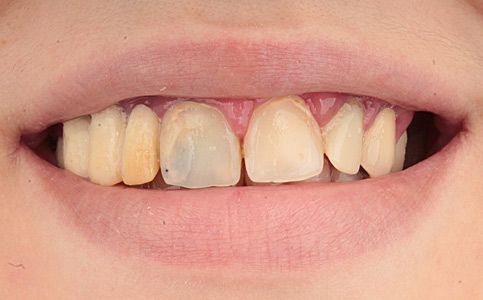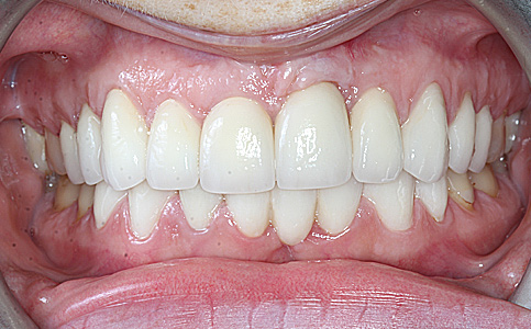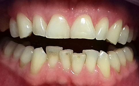 Pierwszym etapem była deprogramacja zgryzu i wyleczenie ubytków próchnicowych, następnie ustabilizowanie nowej pozycji szczęki względem żuchwy i poprawa estetyki zebów z tego powodu założone zostały korony pełnoceramiczne.