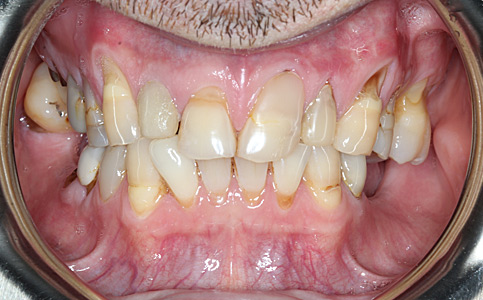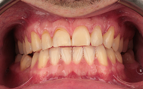 Pacjent chciał poprawić wygląd swojego uśmiechu, rozpoczęliśmy od wyleczenia próchnicy oraz leczenia endodotycznego i chirurgicznego. Następnie wypełniliśmy wszystkie braki zębowe za pomocą estetycznych koron i mostów.