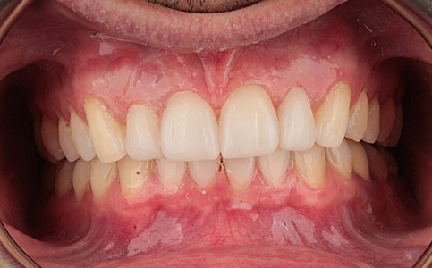 Po rehabilitacji stawu skroniowo-żuchwowego, leczeniu ortodontycznym, odbudowaliśmy pacjentowi wysokość zgryzu za pomocą koron pełnoceramicznych. Dzięki kompleksowemu leczeniu efekty leczenia będą się długo utrzymywać a przewlekłe migreny ustąpiły.