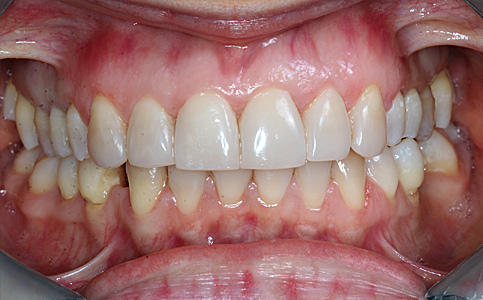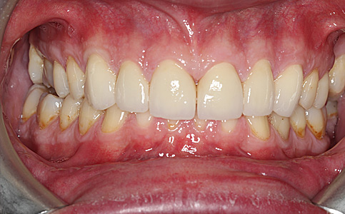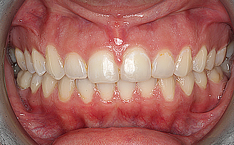 Po leczeniu zachowawczym i ortodontycznym została wykonana plastyka dziąseł oraz małe korekty estetyczne kompozytem w odcinku przednim.