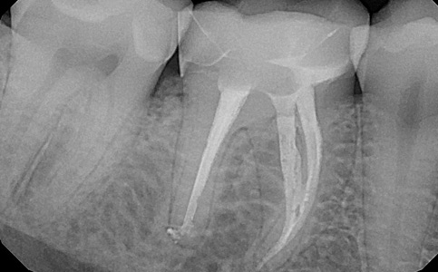 Po dokładnej diagnostyce ząb zakwalifikowano do leczenia endodontycznego. Leczenie przeprowadzane zostało przez naszego specjalistę pod mikroskopem.